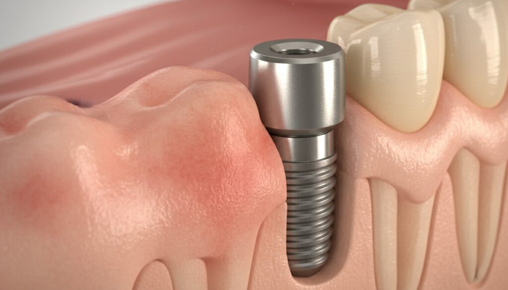 次に、インプラント周囲炎という感染症があります。これは、インプラントの周辺組織に炎症が起こる状態で、放置すると最終的にインプラントが脱落してしまう可能性があります。